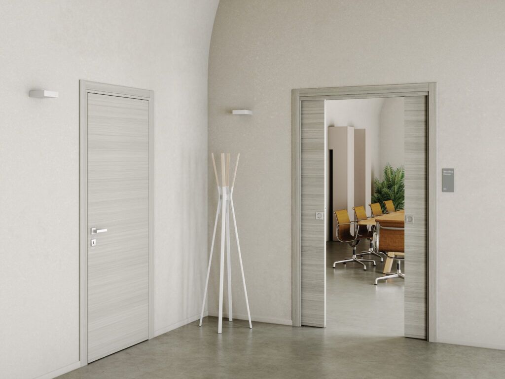 Available in a rich palette of five designer finishes—Bianco Matrix, Palissandro Matrix, Crema Matrix, Olmo Matrix, and Blu Matrix—each door brings a unique personality to your space while maintaining a cohesive, contemporary tone. Horizontal woodgrain textures that evoke natural elegance while complementing minimalist and modern interiors.